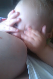 Such a big boy.... Ben is a pro at breastfeeding. He can mulit-task. He has learned to play peek-a-boo and what better place to practice then when you are getting some mama milk.